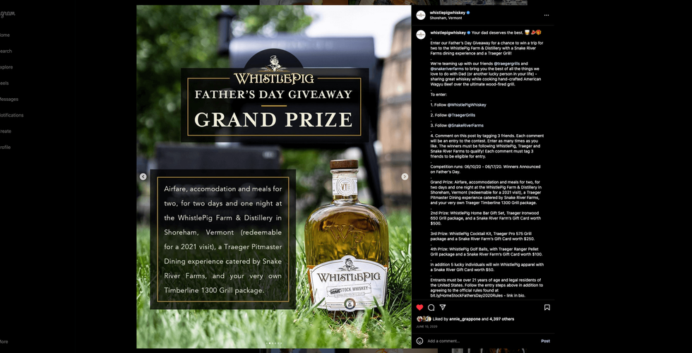 We created a giveaway that included a trip to WhistlePig's Farm and Distillery, Traeger Grills, and Snake River Farms coupons.